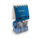 Eine samtige Creme aus weißer Schokolade und knusprigen Torrone-Stückchen mit Piemont-Haselnüssen in einem Schälchen aus Milchschokolade, alles umhüllt von einem köstlichen Zartbitterschokoladenüberzug.