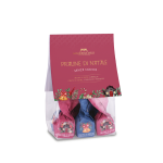 Zartbitterschokolade 29 % (Kakaomasse, Zucker, Kakaobutter, Emulgator: Sonnenblumenlecithin), MILCHschokolade 29 % (Zucker, Kakaobutter, VOLLMILCHpulver, Kakaomasse, Emulgator: SOJAlecithin, natürliches Vanillearoma), MILCHrahm [Zucker, pflanzliche Öle und Fette (Sonnenblume, SOJA, Raps, Kokos, Kakaobutter), MagerMILCHpulver 12 %, Molkenpulver, Emulgator: Sonnenblumenlecithin, Vanillearoma), 11 % weiße Schokolade (Zucker, Kakaobutter, MILCHpulver , Emulgator: Sonnenblumenlecithin, natürliches Vanillearoma), HASELNÜSSE, 3% Nougatcreme (Zucker, Glukosesirup, Sonnenblumenöl, Honig, geröstete HASELNÜSSE, Speisegelatine, Aromen).
