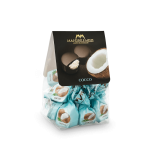 Chocolate negro 30 % (pasta de cacao, azúcar, manteca de cacao, emulsionante: lecitinas (SOJA), aroma natural de vainilla), chocolate con LECHE (azúcar, manteca de cacao, leche entera en polvo, pasta de cacao, emulsionante: lecitinas (SOJA), aroma natural de vainilla), chocolate blanco (azúcar, manteca de cacao, leche en polvo, emulsionante: lecitina de girasol, aroma natural de vainilla), coco deshidratado 18 % (DIÓXIDO DE AZUFRE), azúcar glas (azúcar, almidón de maíz), azúcar invertido.