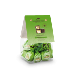 Chocolate negro 30 % (pasta de cacao, azúcar, manteca de cacao, emulsionante: lecitinas (SOJA), aroma natural de vainilla), chocolate con LECHE (azúcar, manteca de cacao, leche entera en polvo, pasta de cacao, emulsionante: lecitinas (SOJA), aroma natural de vainilla), crema de LECHE [azúcar, aceites y grasas vegetales (girasol, coco, manteca de cacao), leche desnatada en polvo 12 %, suero de leche en polvo, emulsionante: lecitinas (SOJA), aroma natural de vainilla], chocolate blanco (azúcar, manteca de cacao, leche entera en polvo, emulsionante: lecitina de girasol, aroma natural de vainilla), crema de PISTACHO 6 % (PISTACHO [96 %], aceite de girasol, colorantes: clorofila, curcumina, aroma natural de cártamo).