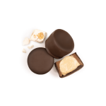 Une crème veloutée au chocolat blanc, enrichie d’éclats de nougat croquants aux noisettes du Piémont, coulée dans une mini-coque de chocolat au lait, puis recouverte d’une généreuse couche de chocolat noir : un vrai délice aux trois chocolats.