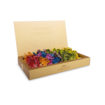 Cioccolato fondente 30% (pasta di cacao, zucchero, burro di cacao, Emulsionante: lecitine (SOIA), aroma naturale di vaniglia), cioccolato al LATTE (zucchero, burro di cacao, LATTE intero in polvere, pasta di cacao, Emulsionante: lecitine (SOIA), aroma naturale di vaniglia), cioccolato bianco (zucchero, burro di cacao, LATTE in polvere, Emulsionante: lecitina di girasole, aroma naturale di vaniglia), crema pasticcera (LATTE parzialmente scremato UHT, zucchero semolato, destrosio, UOVA pastorizzate, farina di GRANO tipo "0"), aroma alcolico al Moscato, vino Moscato d’Asti DOCG 3% (contiene SOLFITI), zucchero invertito, aromi.